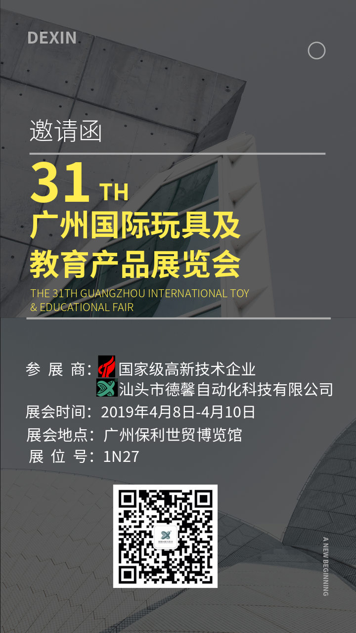 第31屆廣州國際玩具展,德馨自動化科技誠邀您的光臨與指導!